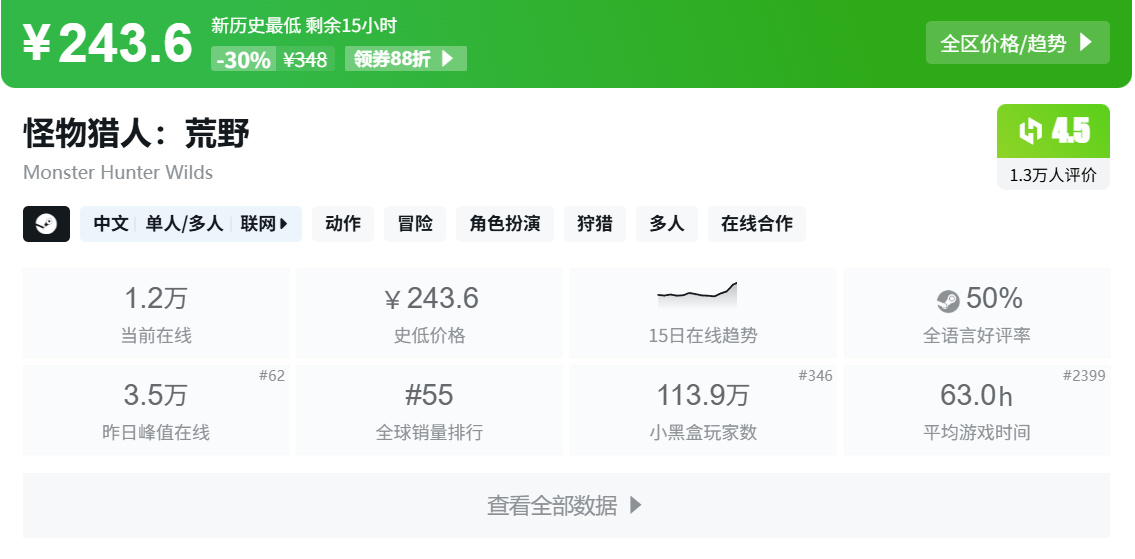 4.《怪物猎人:荒野》